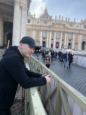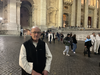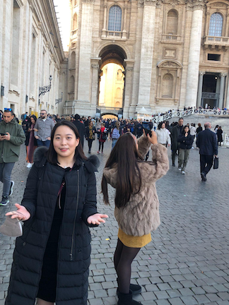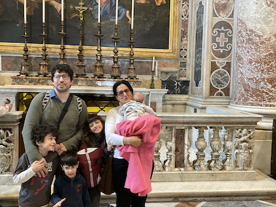 Thật ra, chúng tôi đến đây để nghỉ lễ, nhưng hôm nay chúng tôi muốn mang theo bọn trẻ. Đây là lần đầu tiên bọn trẻ đến thăm Vương cung thánh đường Thánh Phêrô, và tôi muốn giải thích cho chúng biết nơi này là trung tâm của Công giáo, và vị giáo hoàng rất quan trọng đối với tôi.
